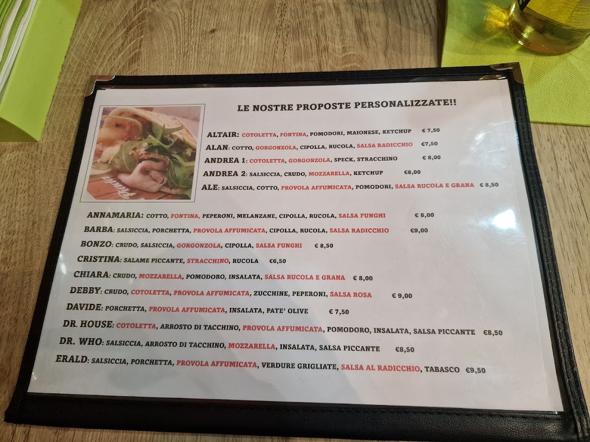 You’ll find a diverse selection of piade thoughtfully crafted with fresh, quality fillings. Examples include the Calleburger, a hearty choice that combines familiar burger elements with the softness of piada bread, and the Piadina Cotto e Cotoletta, which delivers comforting tastes of cured ham and breaded cutlet. For something a little different, options like the Piadina con Zucchine Stracchino e Porchetta offer a balanced mix of creamy and savory notes, perfect for a light lunch or an informal dinner.